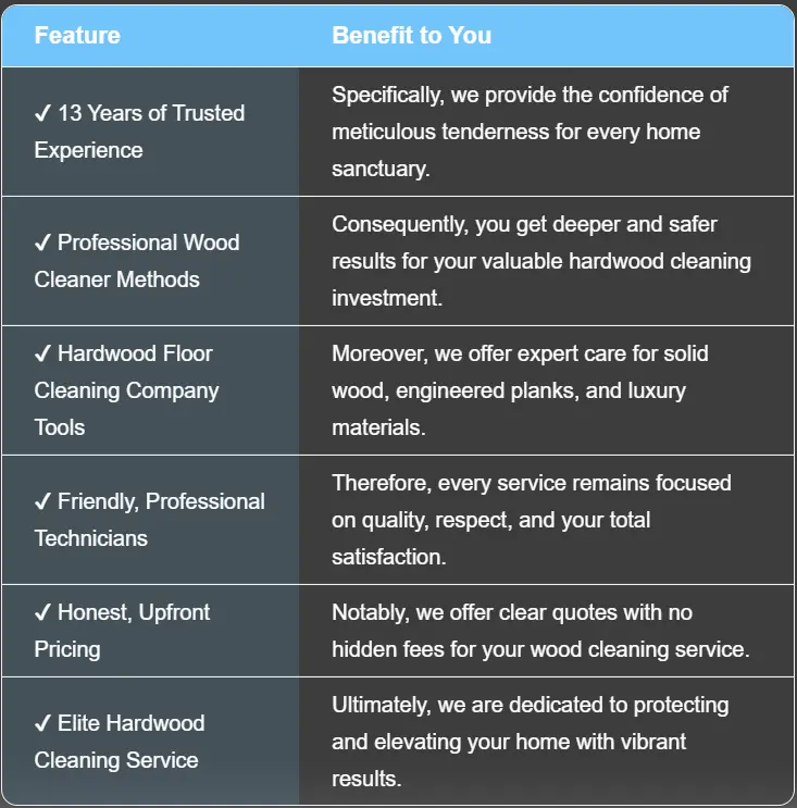 Specifically, if you need a wood cleaner service near me, our team provides immediate response times. Ultimately, we are the hardwood floor cleaning company that values your schedule and home safety.